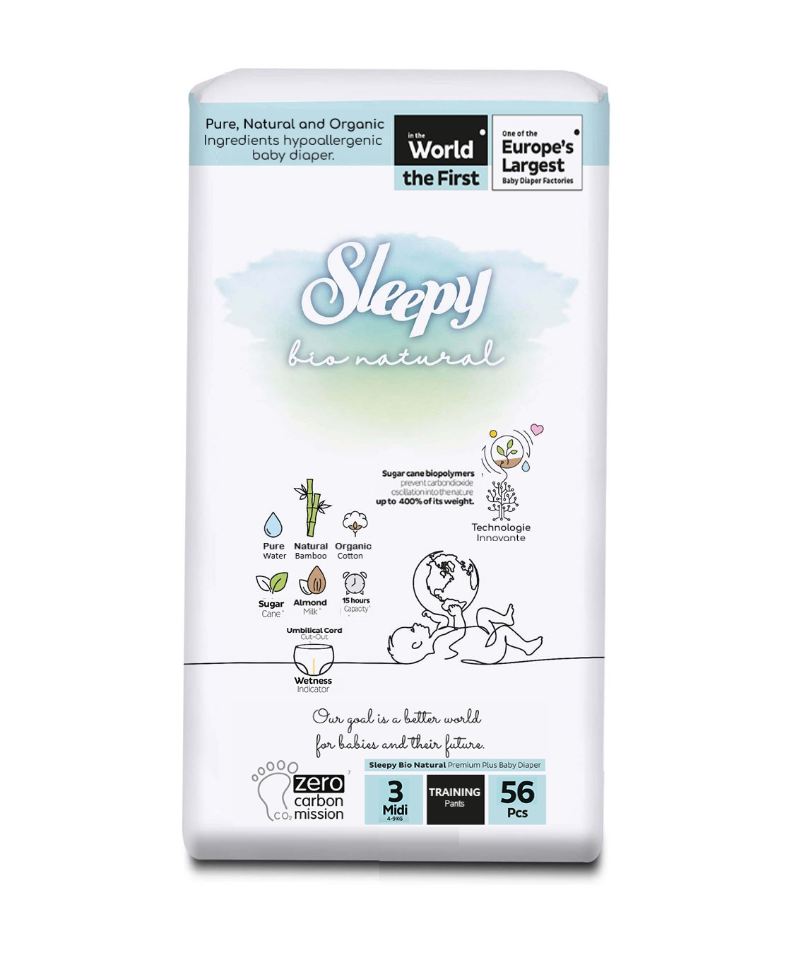 BIOPOLYMÉRE DE LA CANNE À SUCRE – Voile de surface Fabriqué avec du Bioplastique (Polyéthylène végétal), d’origine biosourcé. – La couche contient des biopolymères obtenues à partir de la canne à sucre qui absorbe le taux de dioxyde de carbone jusqu’à 400 fois son poids, et protège ainsi la peau de votre bébé contre l’irritation.