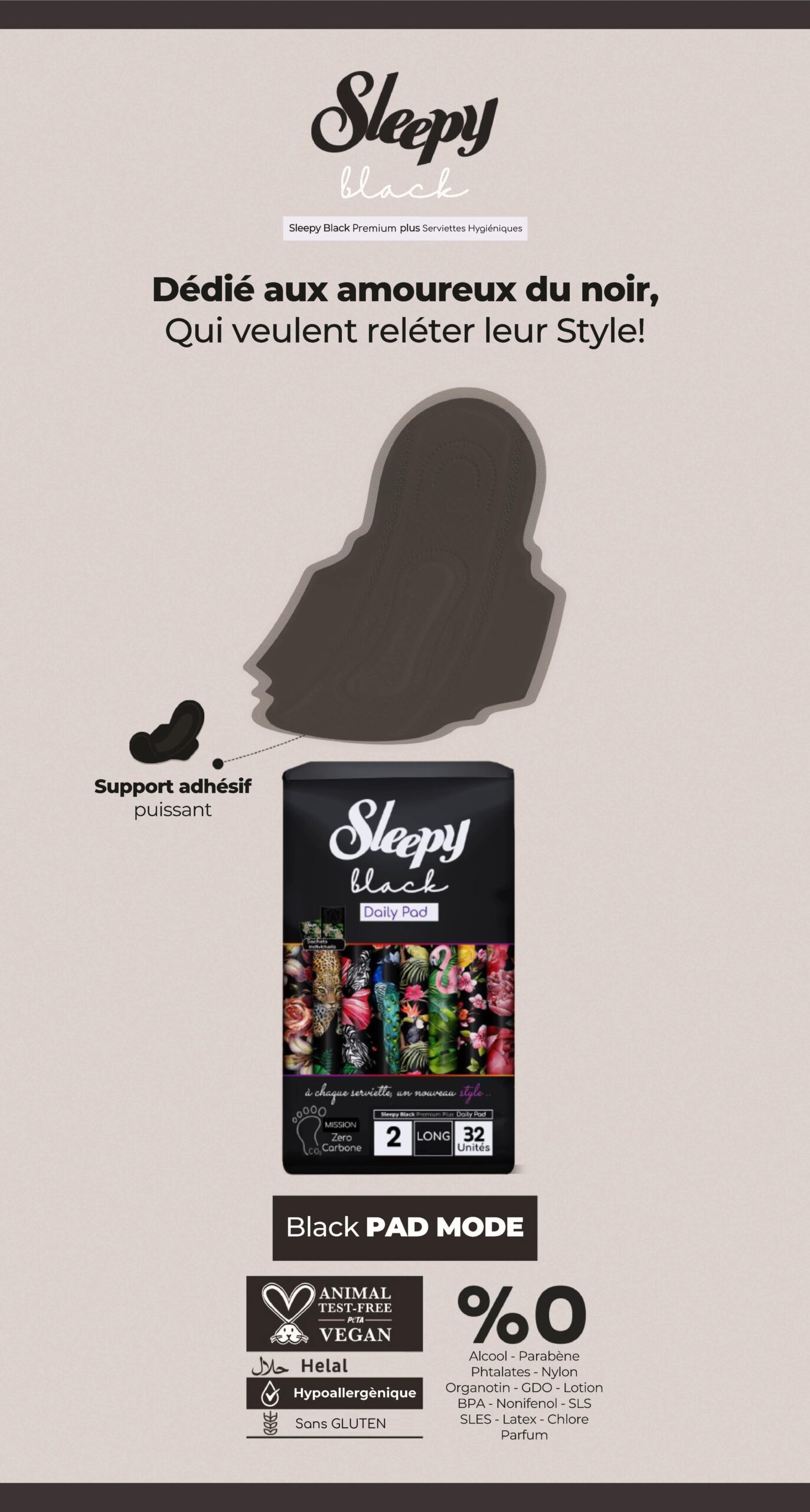 Les Serviettes Hygièniques Sleepy Black Premium Plus